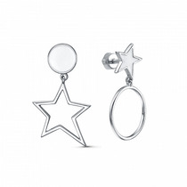 Серьги-пусеты женские длинные из серебра родированные (2 в 1) - Звёзды С-4437-Р