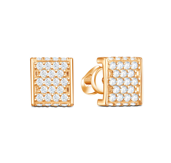 Совместные покупки Тюмень Ювелирные украшения и бижутерия Серьги — Серьги-пусеты из золочёного серебра с фианитами 925 пробы С-4705-З