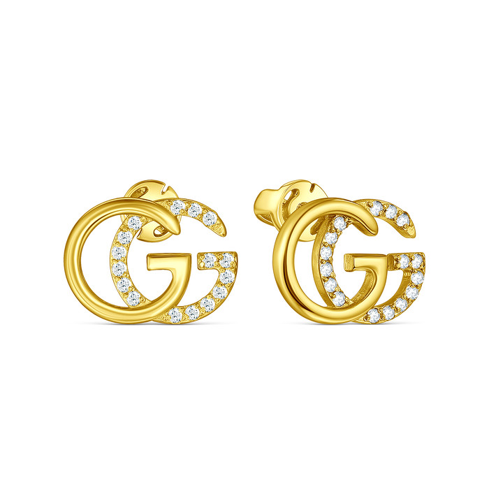 Совместные покупки Тюмень Ювелирные украшения и бижутерия Серьги — Серьги-пусеты из золочёного серебра с фианитами - GG 925 пробы 4-579лз200