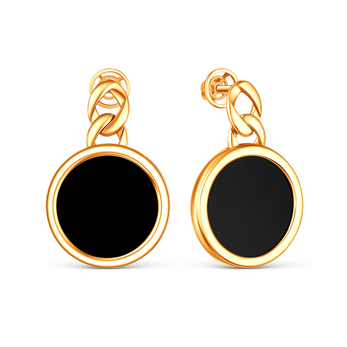 Серьги-пусеты из золочёного серебра с натуральным ониксом - Круги 925 пробы С-40