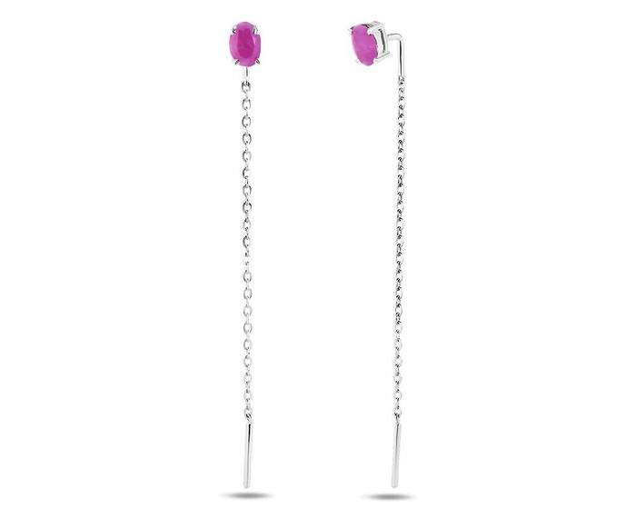 Серьги, арт.658311 Серебро Серебро 925, 1,41 гр., рубин корунд