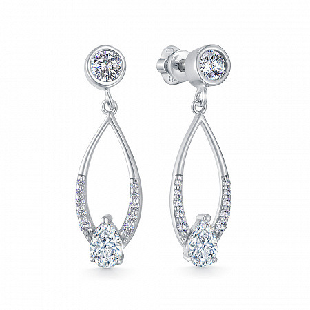 Серьги с фианитом родированные серебро 925*