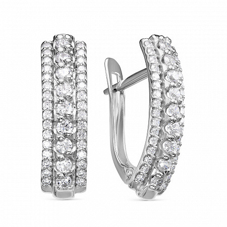 Серьги с фианитом родированные серебро 925*