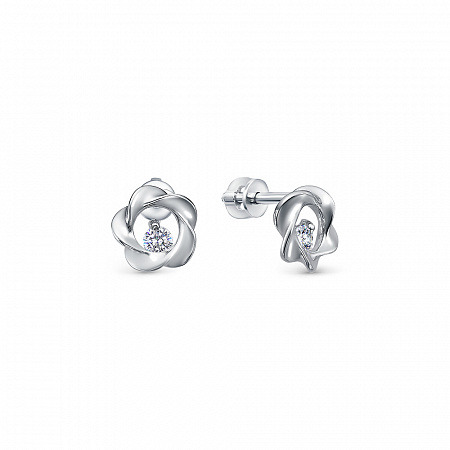 Серьги с фианитом родированные серебро 925*