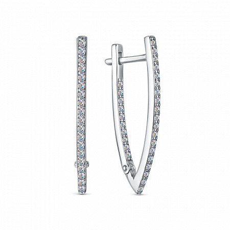 Серьги с фианитом родированные серебро 925*