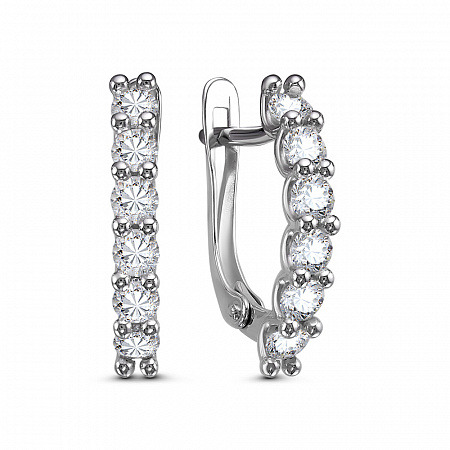 Серьги с фианитом родированные серебро 925*