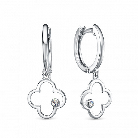 Серьги с фианитом родированные серебро 925*