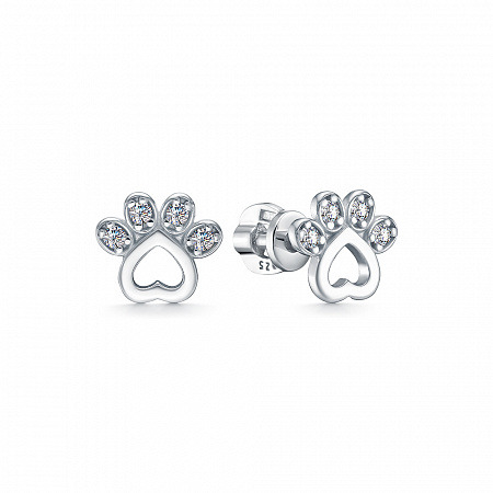 Серьги с фианитом родированные серебро 925*