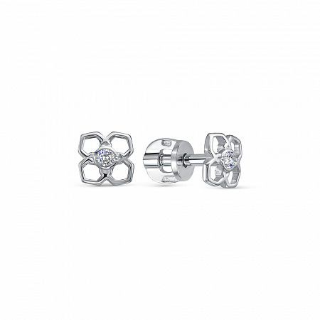 Серьги с фианитом родированные серебро 925*