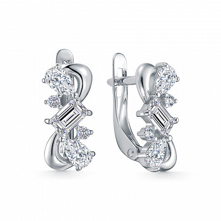 Серьги с фианитом родированные серебро 925*