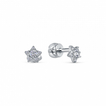 Серьги с фианитом родированные серебро 925*