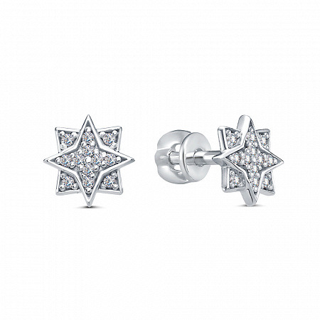 Серьги с фианитом родированные серебро 925*