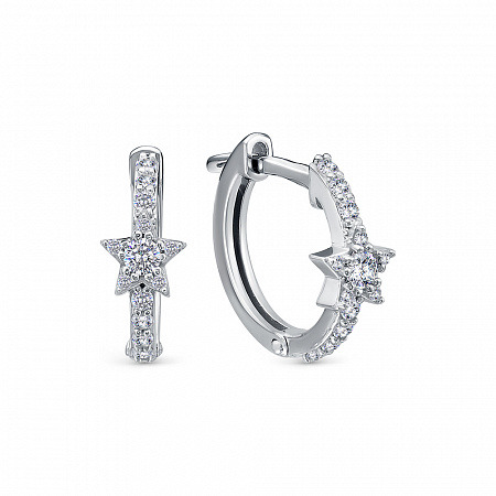Серьги с фианитом родированные серебро 925*