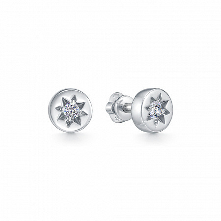 Серьги с фианитом родированные серебро 925*