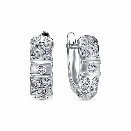 Серьги с фианитом родированные серебро 925*