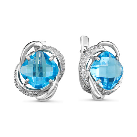 Серьги с фианитом родированные серебро 925*