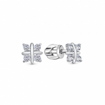 Серьги с фианитом родированные серебро 925*