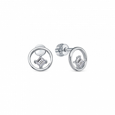 Серьги с фианитом родированные серебро 925*