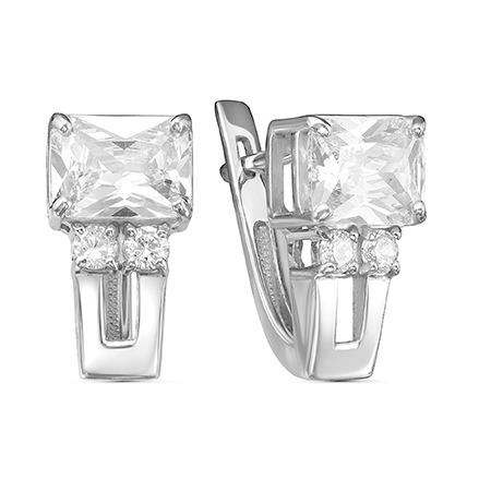 Серьги с фианитом родированные серебро 925*