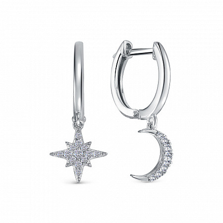 Серьги с фианитом родированные серебро 925*