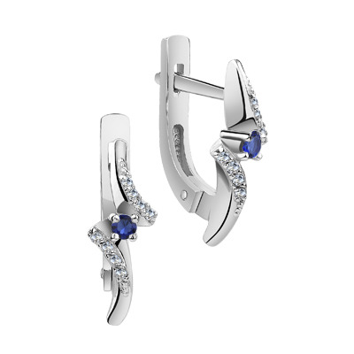 Серьги с фианитом родированные серебро 925*
