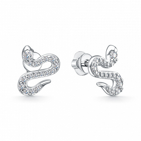 Серьги с фианитом родированные серебро 925*
