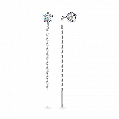 Серьги с фианитом родированные серебро 925*