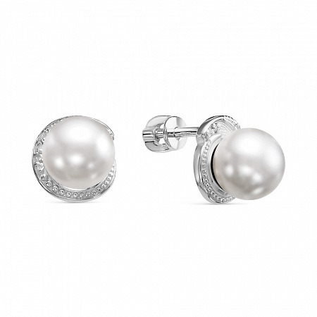 Заказать Серьги с иск.жемчугом и фианитом родированные серебро 925*
