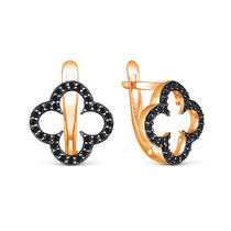 Серьги из золочёного серебра с чёрными фианитами-нано и тёмным родированием 925
