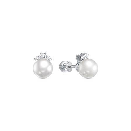 Серьги с иск.жемчугом родированные серебро 925*