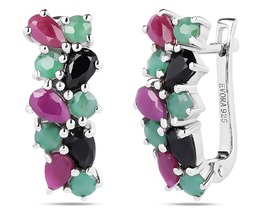 Серьги, изумруд берилл , рубин корунд , сапфир корунд, Арабеска