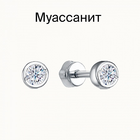 Серьги с муассанитом родированные серебро 925*