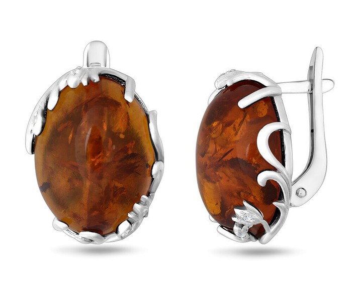 Серьги, арт.656581 Серебро Серебро 925, 4,47 гр., янтарь