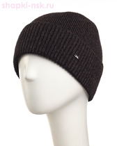 Мужская шапка по голове однотонной расцветки. Связана гладкой вязкой с узкой рельефной манжетой из полушерстяной пряжи. Утепленная модель для зимы - подкладка полный флис.