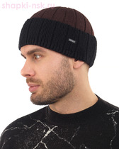 Мужская классическая шапка по голове с отворотом. Связана из хлопка с добавлением вискозы, что придает шапке комфортное ощущение при носке. Металлический логотип.