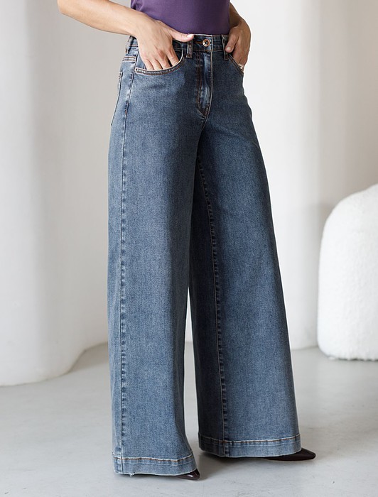 Совместные покупки Тюмень Женская одежда Костюмы, комплекты — Широкие джинсы с декоративной стиркой из эластичного плотного денима
