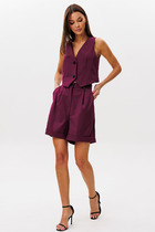 Шорты свободного кроя. Выполнены из фактурной ткани серого цвета со стразами и вкраплениями контрастной нити (чёрного цвета). С подкладкой. Пояс на резинке. В боковых швах карманы. Длина 38 см