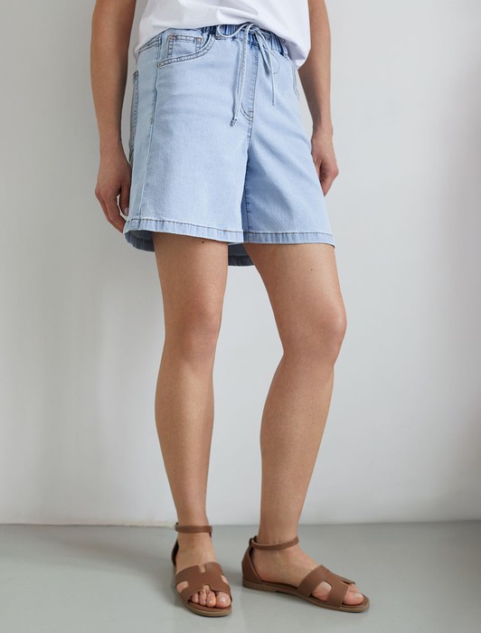 Состав: 80%Хлопок 18%ПЭ 2%ПУ Плотность: 8 OZШорты светло-голубого цвета выполенены из облегченного денима плотностью 8 OZ, они идеально подходят для весны и лета. После пошива изделие подвергли специальному виду вошинга — salt-stone washing (солт-стоун вошинг), что дословно значит стирка с каменной солью. Такой вид вошинга позволяет получить стильные потертости на голубых оттенках денима. Средняя длина делает их универсальным элементом гардероба: они уместны как на пляжном отдыхе, так и в городских прогулках. Благодаря мягкой эластичной резинке на поясе, они обеспечивают идеальную посадку и подстраиваются под особенности фигуры. Качественная надежная фурнитура добавлет образу премиальности. Шорты не стесняют движений, позволяя чувствовать себя комфортно даже в жаркую погоду. Летние шорты не только удобные, но и практичные для повседневной носки, благодаря натуральному материалу и продуманному крою. Джинсовые шорты с карманами всегда актуальны и незаменимыми для базового гардероба, с ними можно составить классический, так и расслабленный образ.
