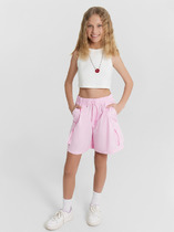 Шорты для девочек, укороченные с боковыми карманами. Пояс из кашкорсе. Декор вышивка
