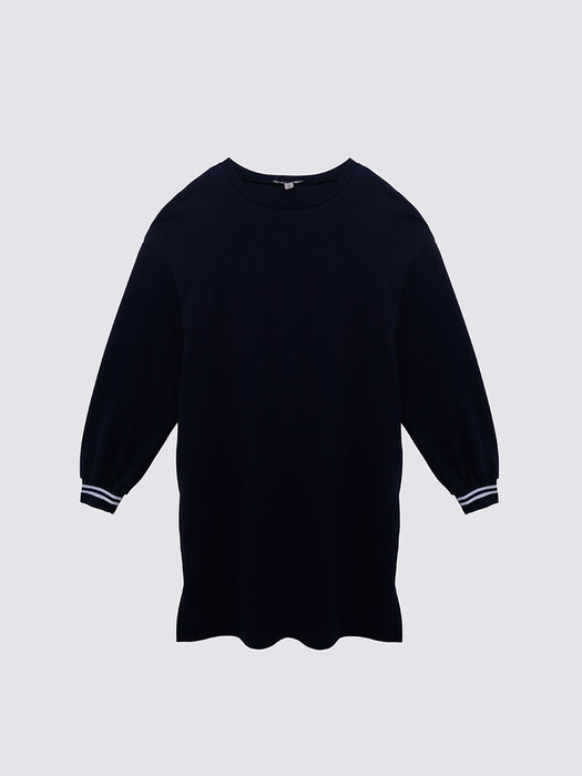 Трикотажное платье  PLUS SIZE свободного силуэта. Рукав спущенный,  по низу трикотажный подвяз с контрастными полосками. В боковых швах расположены карманы, по бокам разрезы.