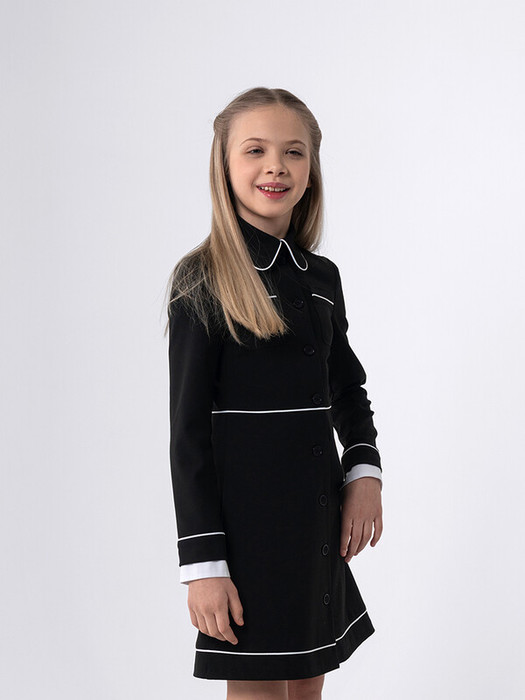 Трикотажное платье для девочек станет идеальным выбором для школы. Оно отличается удобством и стильным дизайном, что делает его подходящим для повседневной носки. Застежка посередине полочек обеспечивает легкость одевания и создает аккуратный внешний вид.На верхней части полочек настрочены прямоугольные карманы, которые не только добавляют функциональности, но и служат украшением. Длинные рукава на манжетах придают образу завершенность и защиту от холода в прохладную погоду.