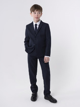 Классический костюм для мальчика из износостойкой и устойчивой к смятию костюмной поливискозы. Пиджак полуприлегающего силуэта с английским воротником, боковыми прорезными карманами с клапаном. Дополнен нагрудным прорезным карманом с листочкой и тремя нарукавными пуговицами. Застёгивается на две пуговицы. Брюки прямого силуэта немного зауженные к низу, со стрелками, боковыми карманами и прорезными задними карманами с клапаном, на втачном поясе с регулировкой и шлёвками.