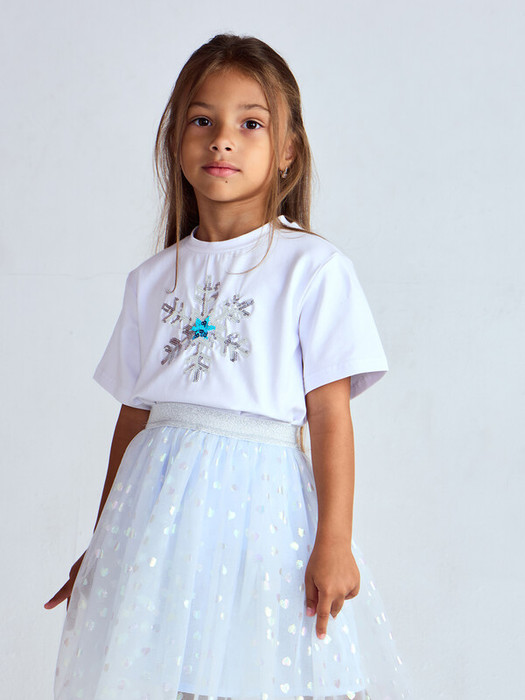 Хлопковая футболка с рисунком из пайеток. Изготовлена из дышащей ткани, она обеспечит комфорт в течение всего дня. Свободный силуэт и широкие рукава позволяют чувствовать себя свободно и уверенно. Эта вещь идеально подходит как для праздника, так и на каждый день.