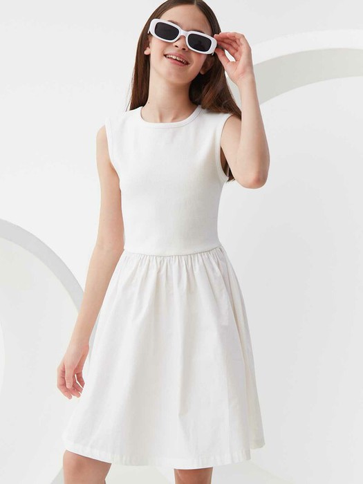 Комбинированное летнее платье длины миди с круглым вырезом на спине. Лиф из мягкого трикотажа в рубчик полуприлегающего кроя. Юбка А-силуэта из плотной хлопковой ткани. Крой с пышной юбкой позволит быть самой активной. Акцент на талии формирует утончённый силуэт. Широкие бретели и U-образный вырез на груди и спинке. Размерный ряд 128 – 176 см.
