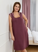 Сорочка женская приталенного силуэта, на бретелях, на полочке подрезная кокетка со складочками по центру, обработана кружевом. Низ изделия обработан краевым швом