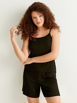 Сорочка из набивной кулирки. На тонких бретелях, длина до середины бедра.