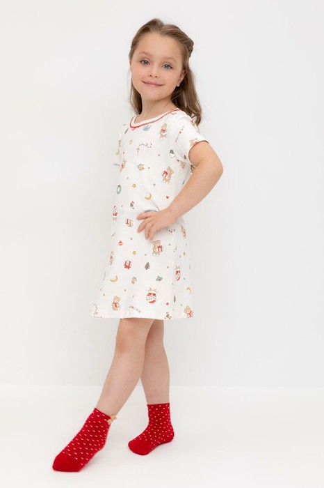 Сорочка из мягкого натурального хлопка с короткими втачными рукавами. Оригинальная набивка выполнена из стойких, гипоаллергенных текстильных красителей. Изделие сохраняет цвет и форму после многократных стирок. Все трикотажные полотна производятся в соответсвии с нормами Швейцарского сертификата ЭкоТекс.