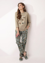 Сорочка из вискозы (набивка) на тонких бретельках. В качестве отделки настрочено кружево. Внизу расположен разрез.
