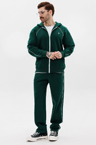 Классический мужской спортивный костюм состоит из худи на застёжке-молнии и брюк на манжетах. Всесезонная ткань сделает его любимым в Вашем гардеробе как для дома, так и улицы.