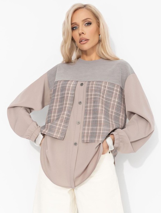 Состав: Блузочная ткань «твил», трикотаж «рибана», тиаф клетка (65% полиэстер, 30% вискоза, 5% спандекс)